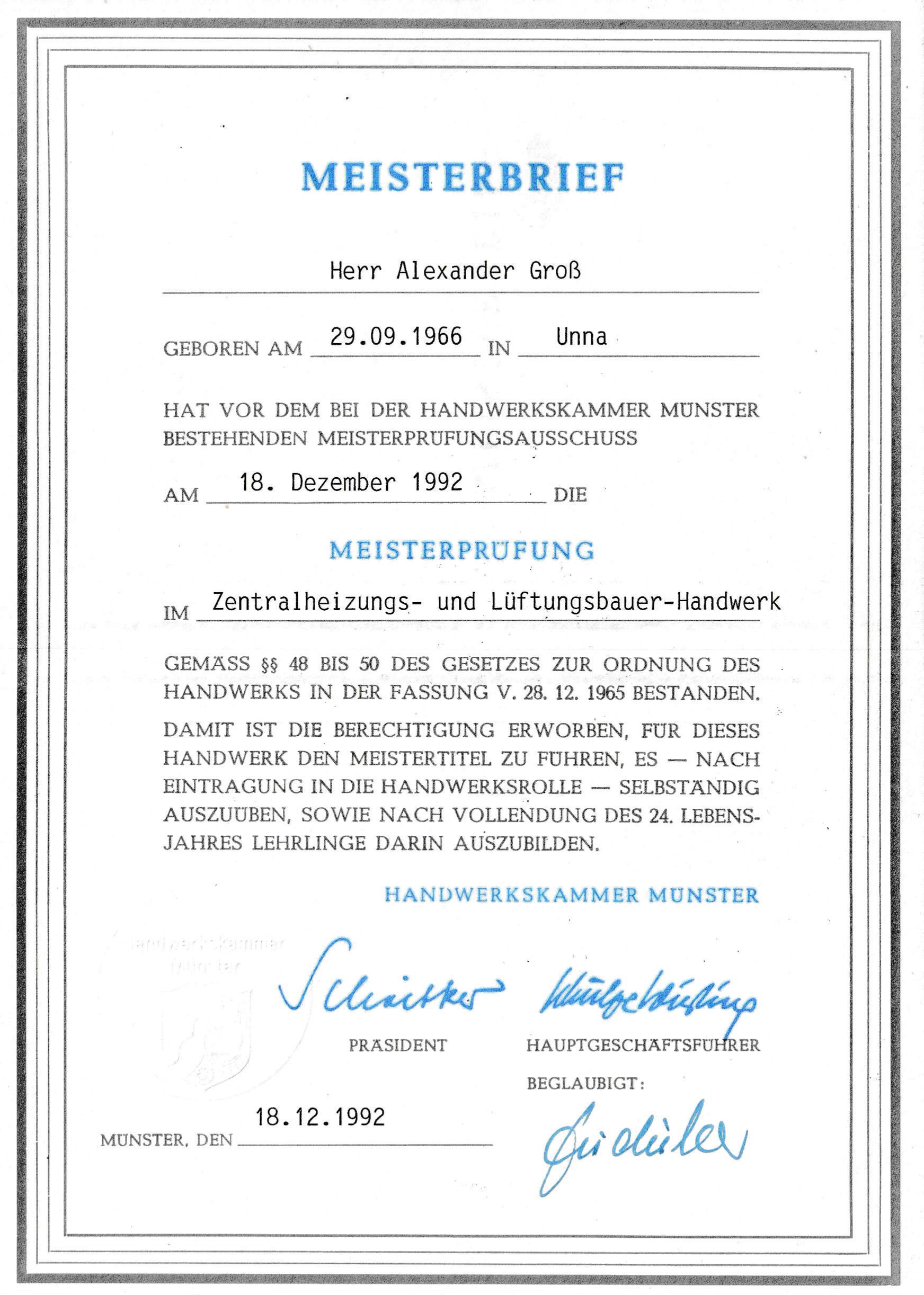 Documented proof of journeyman qualification achieved in 1987, establishing advanced trade proficiency.